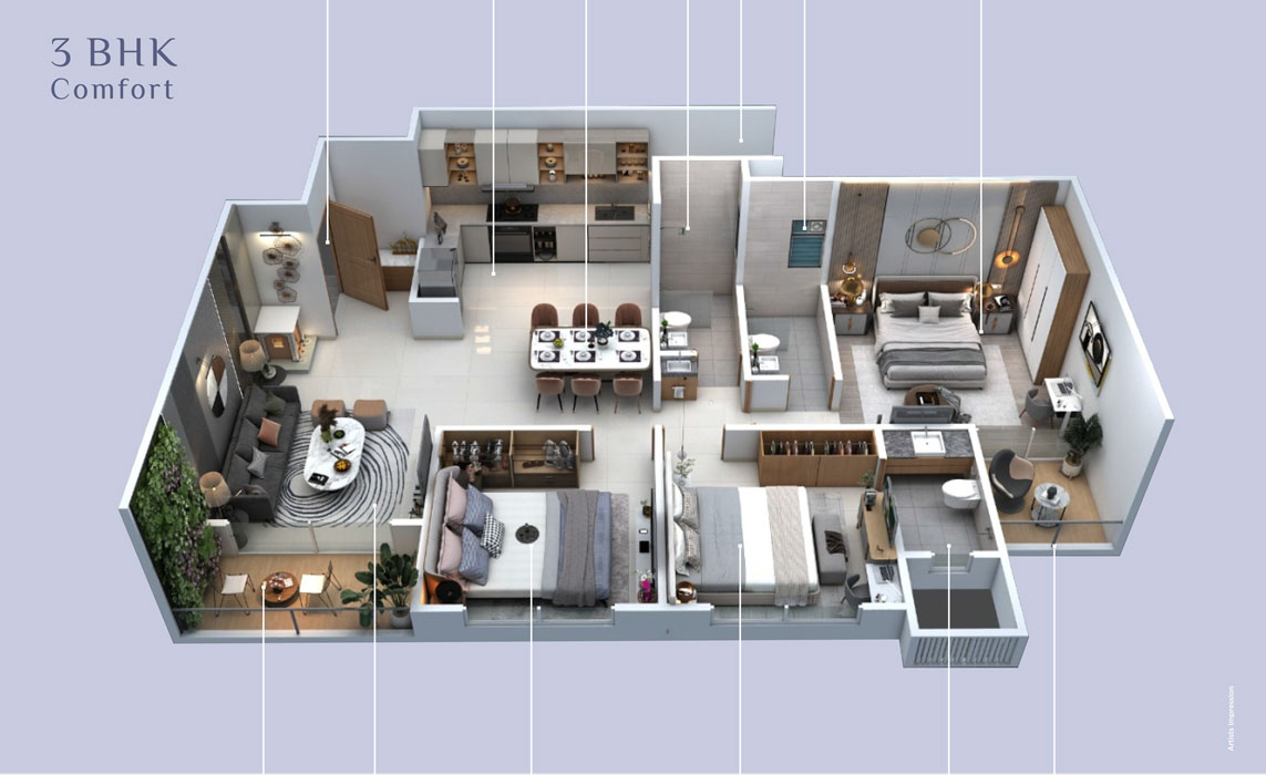 | 3 BHK COMFORT | 1129 - 1145 sq.ft. | 1.5X Cr* Price Breakup |