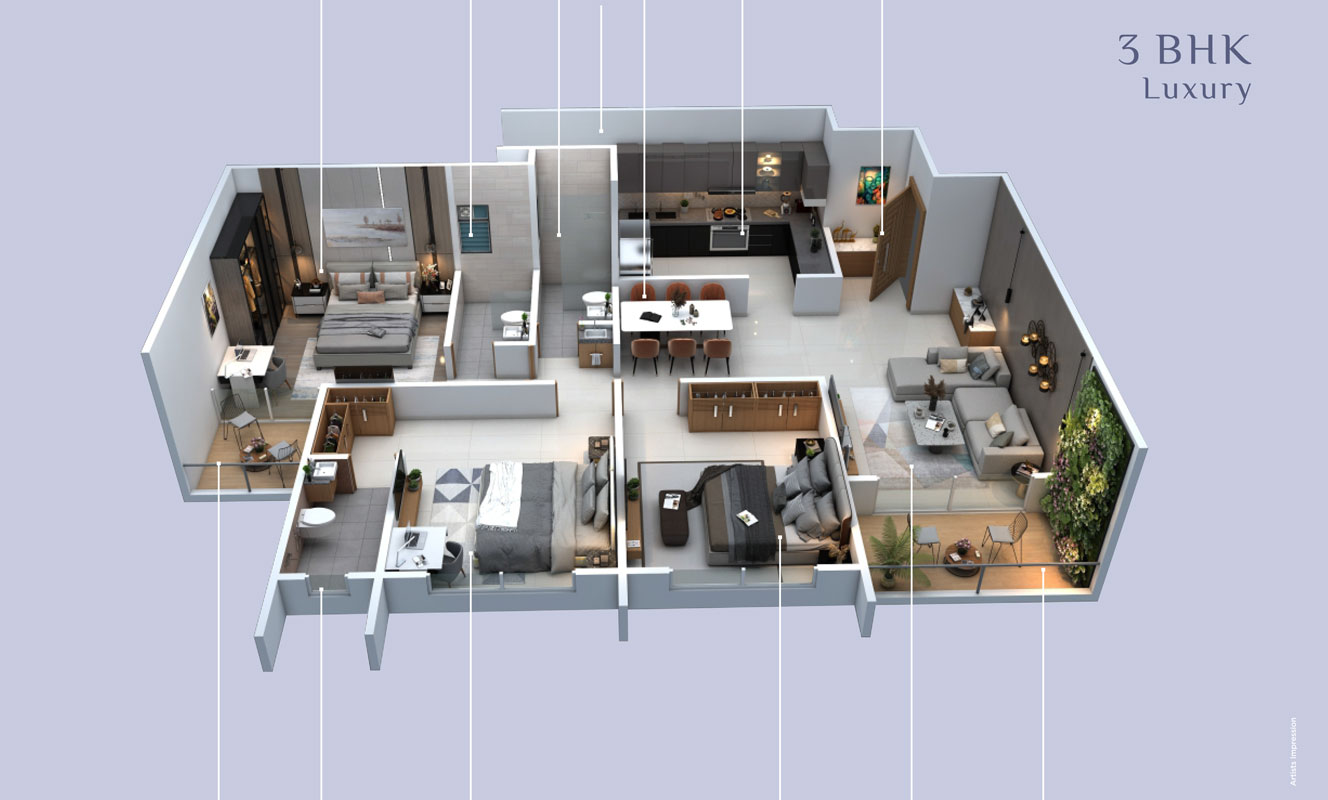 | 3 BHK LUXURY | 1247 - 1266 sq.ft. | 1.7X Cr* Price Breakup |